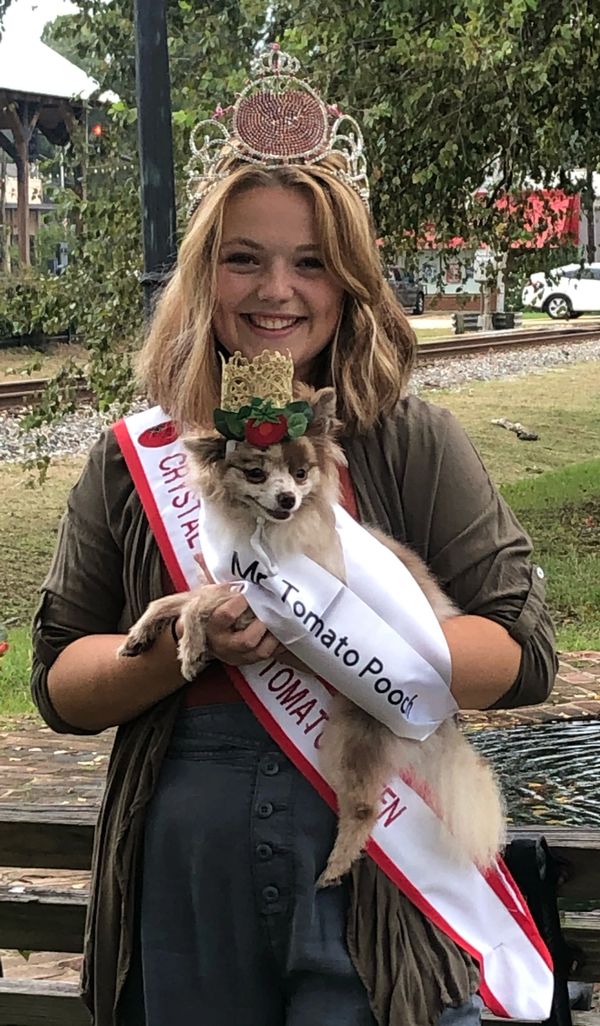 2020 Tomato Queen ANNA ROBERSON is holding our newly crowned Tomato Pooch NUGGET!